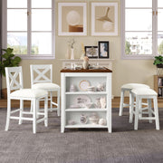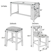 5 Pieces Counter Height Rustic Farmhouse Dining Room Wooden Bar Table Set With 2 Stools And 2 Chairs