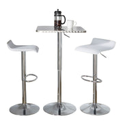 Ale - 3 Piece Bar Set Bistro Square Contemporary Adjustable Oval Footrest - Silver / Chrome / White