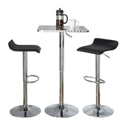 Ale - 3 Piece Bar Set Bistro Square Contemporary Adjustable Oval Footrest - Silver / Chrome - Black