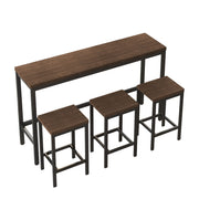 Modern Design Long Dining Table Set With 3 Stools - Dark Brown