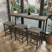 Modern Design Long Dining Table Set With 3 Stools - Gray