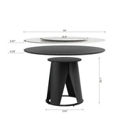 Modern 59'' Sintered Stone Dining Table With Round Turntable And Metal Pedestal 6 Person Set - White