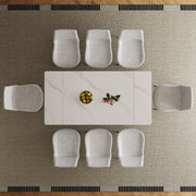 Retractable Dining Table Set With Carbon Steel Legs, Includes 8 Chairs - White