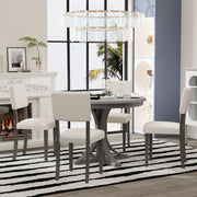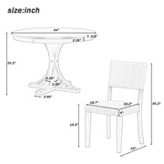 Retro Round Dining Table Set With Curved Trestle Style Table Legs And Upholstered Chairs For Dining Room