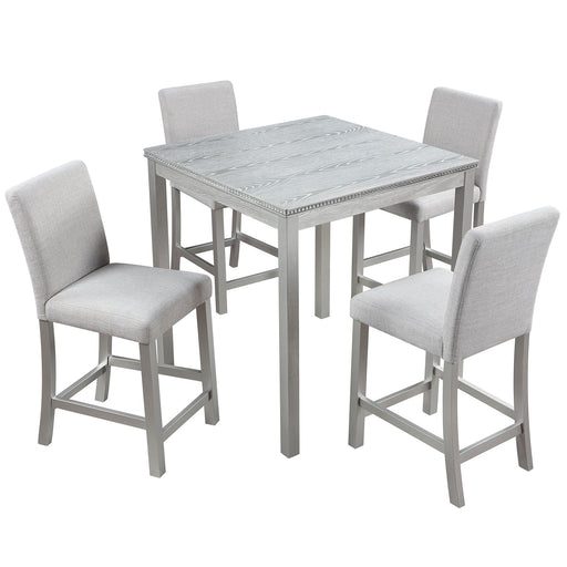View full details5 Piece Counter Height Dining Set, Bar Table With 4 Upholstered Chairs