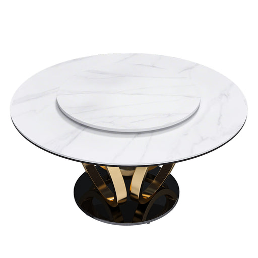 View full detailsRound Dining Table With 360° Smooth Lazy Susan Stain / Heat - Gold / Black / White