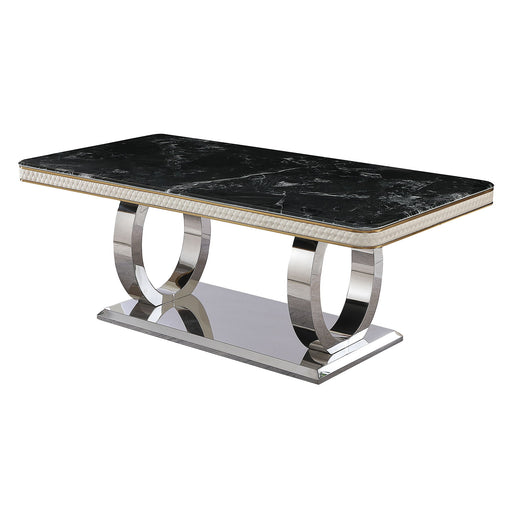 View full detailsLuxury Modern Dining Table With Faux Marble Top And Dual Circle Base - Black