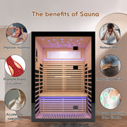 Luxury Double Far Infrared Sauna Room With Epoxy Heating Plates And Starry Sky Lighting - Black / Natural