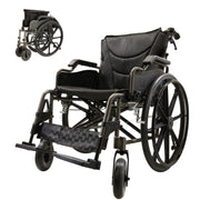 • Compact and narrow wheelchair for small spaces: Seat width of 18", load capacity of 300 lbs, and quick-release rear wheels for easy folding and storage