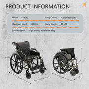 Lightweight Foldable Nursing Wheelchair For Adults Double X Force Support, 300Lbs Capacity, Breathable Cushion & Anti Backflip Design With Tires, Adjustable Seat Belt, Quick Release Wheels - Gray