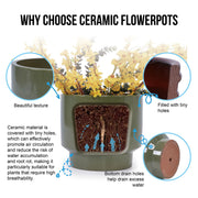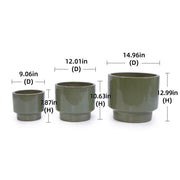 3 Pieces Ceramic Flowerpot, Planter For Patio, Garden Or Windowsills - Antique Light Green
