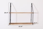 Gardenia - Floating Shelf With Metal Brackets, Decorative Hanging Display For Trophy, Photo Frames, Collectibles, 2 Tier - Natural Wood
