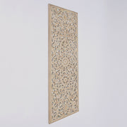 Floral Hand Carved Mandala Rectangle Wall Decor With Mirror - Antique Brown / White