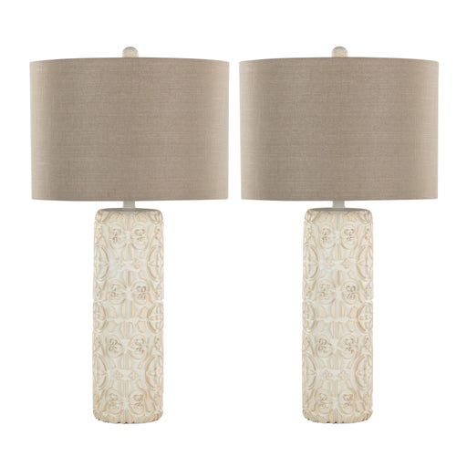 Elegant Design: The Charlotte Table Lamp boasts a stunning polyresin base with an intricately carved pattern and a matching finial, providing...