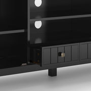 - Features two (2) bottom drawers, two (2) side cabinets with tempered glass doors with one (1) adjustable shelf each