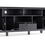 - Extra wide TV Stand is perfect for TVs up to 80 inches includes cord management cut-outs for easy installation of TV and media components
