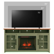 74" Fireplace TV Stand Console For TVs Up To 85" - Sage Green And Fruitwood