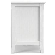 - Transitional design includes shaker style doors, Brushed Nickel knobs, square tapered legs and square edged table top
