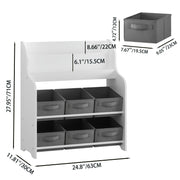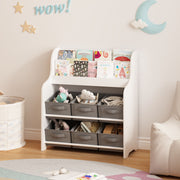 Bookshelf With 6 Storage Bins, Multi Functional Children's Bookcase And Toy Organizer - White