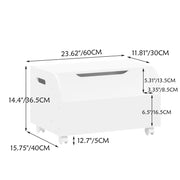 Toy Box With 4 Universal Wheels, Kids Playroom Storage Organizer With Front Bookshelf, Flip Top Lid, Safety Hinge - White