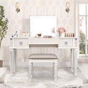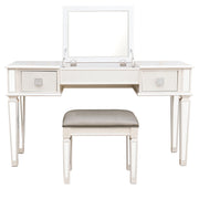 Elegant Mirrored Vanity Desk Set With Drawers And Flip Up Mirror, Silver Finish, Glass And Wood - White