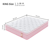 12" King Size Hybrid Mattress With Individual Pocket Spring Comortable Memory Foam - Pink