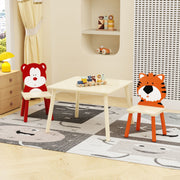 Table And 2 Chairs Set, Activity Play Table Set With Bear & Tiger Design - Natural