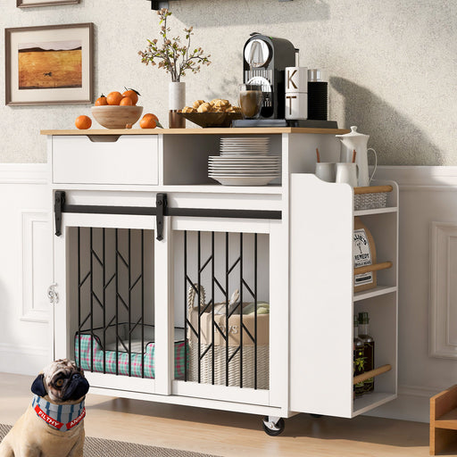 View full detailsModern Style 2 In 1 Pet Friendly Dog Crate Kitchen Island End Table Metal Pine - Natural / White