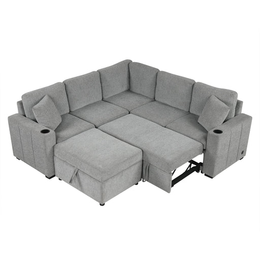 View full detailsSectional Sofa Convertible Pull-Out Bed With Storage Ottoman & USB Ports