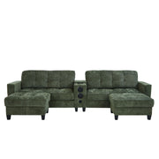 Sectional Sofa, U-Shaped With Movable Ottomans, Bluetooth Speakers, LED Lights, And Modular Storage - Green