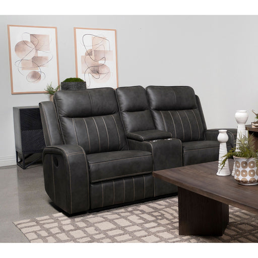 View full detailsFranklin - Upholstered Padded Arm Reclining Loveseat With Center Console - Charcoal