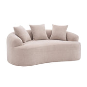 Loveseat Sofa With Wood Grain Chenille Fabric, Cloud White High Density Sponge Couch, Compact Design For Small Spaces - Beige