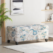 Luxury Storage Ottoman With Floral Patterned Fabric, Soft Close Hinges, Functional Footrest & Seat - Blue Flower / Blue Multi