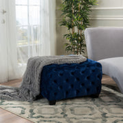 Modern Glam Ottoman With Velvet Upholstery And Button Tufted Design - Navy Blue