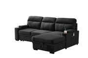 Kaden - Sleeper Sectional Sofa Chaise With Storage Arms And Cupholder - Black
