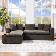 Modern L Shaped Sectional Sofa With Storage Chenille, Upholstered Couch - Gray