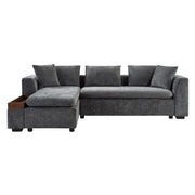 Modern L Shaped Sectional Sofa With Chenille Upholstery And Wooden Storage - Black