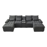 U Shaped Sofa With Console And Cupholders, 6 Seat Upholstered Sleeper Couch Set - Gray
