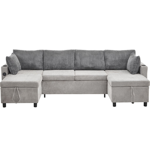 View full detailsU Shaped Sectional Sofa Bed With Storage Chaise Lounges, USB Ports, And Cup Holders