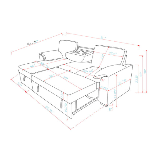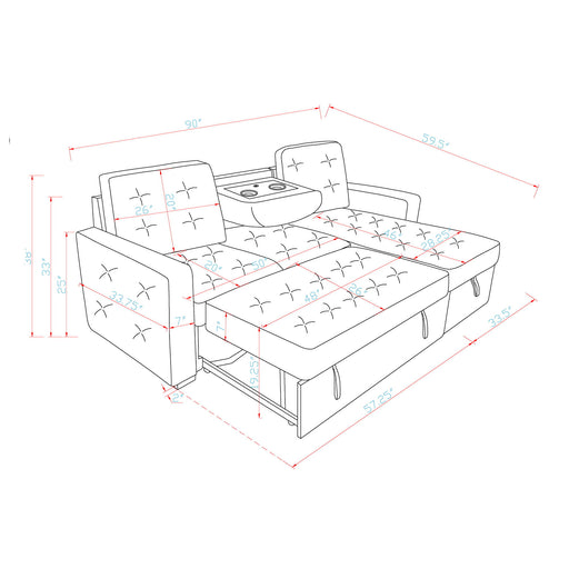 View full detailsSectional Sofa Bed With Pull Out Sleeper, USB Ports, Cup Holders