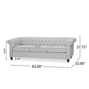 Chesterfield Style 3 Seater Sofa With Deep Button Tufting - Gray