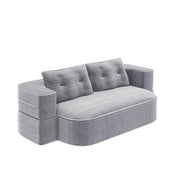 2 In 1 Foldable Sofa Plush Corduroy Sofa Convertible Floor Sofa Bed Deep Seating With Multi Functional Blanket Suitable For Living Rooms - Light Gray