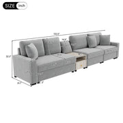 4 Seater Modular Sofa Couch With Storage Armrest And Center Console - Gray