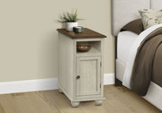 - Versatile Design: This narrow side accent table features a charming two-tone antique white and brown veneer finish, making it suitable for use in a living room as an end table or in a bedroom as a nightstand.