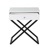 Koda - Wooden End Side Table Nightstand With Glass Top, Drawer And Metal Cross Base - White