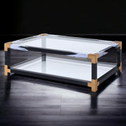 - Modern Design: This sleek occasional coffee table features a clear tempered glass top and shelf, providing a modern touch to any living space with its open compartment and glassy bottom shelf.