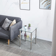 Modern 2 Piece Side Table With Storage Shelf, Tempered Glass, Space Saving Design - Clear