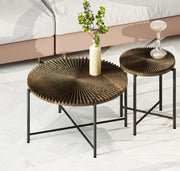 Radial - Pattern Coffee And End Table Set Waterproof Cover, Distressed Cylindrical Design (Set of 2)