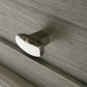 - Transitional design features brushed bronze knob, square tapered legs and square edged table top