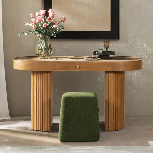 View full detailsJesse - Single Drawer Fluted Oval Console Desk - Honey Brown